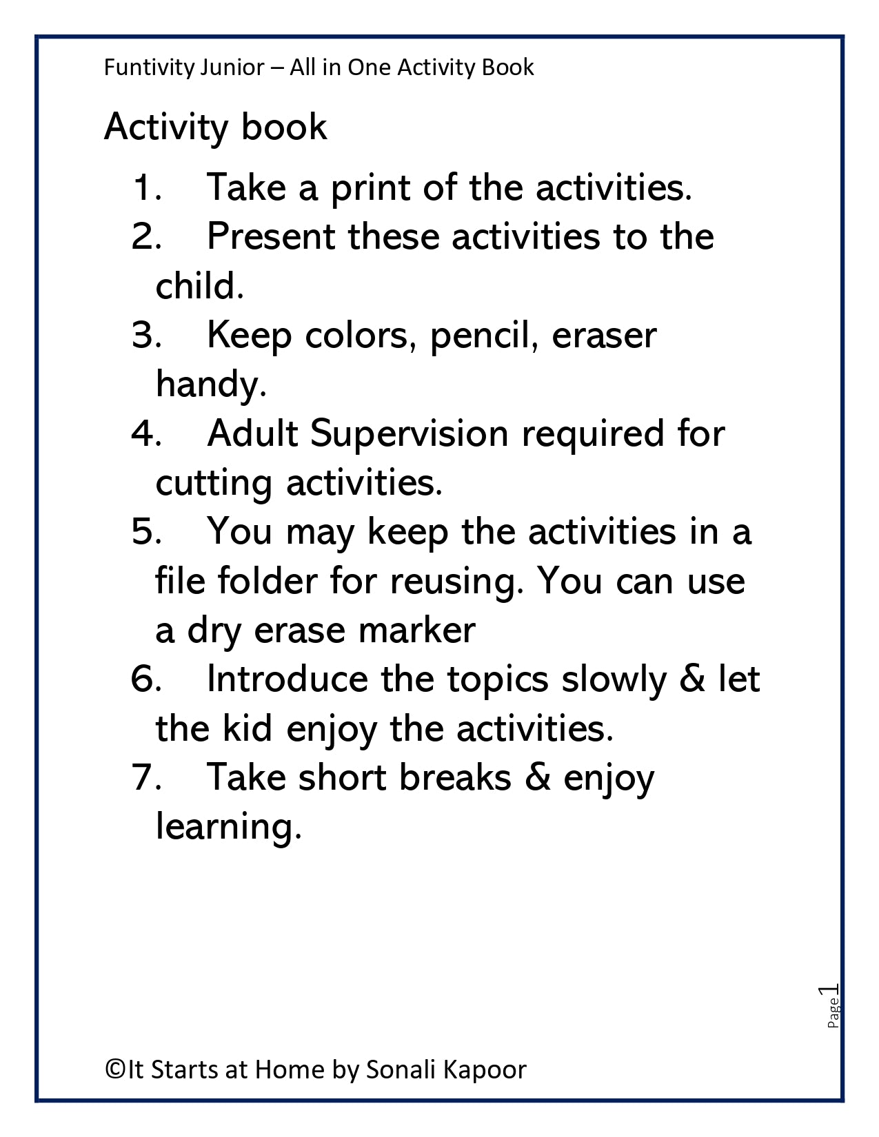 Each product clearly mentions the recommended age range. Most of our activities are designed for children between 3 to 9 years old, with a good mix of fun, learning, and skill-building.